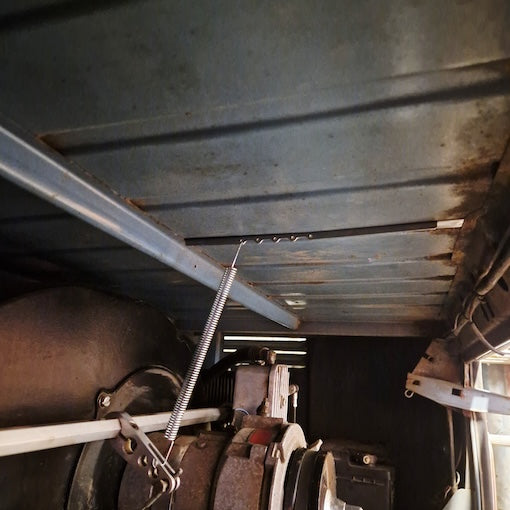 Stainless steel Return spring mount and spring . (Spring can be stretched if you need a softer pull) (Because no 2 setups are the same supplying a spring to do all variations would be impossible , this spring can be pulled a long way and will stretch )